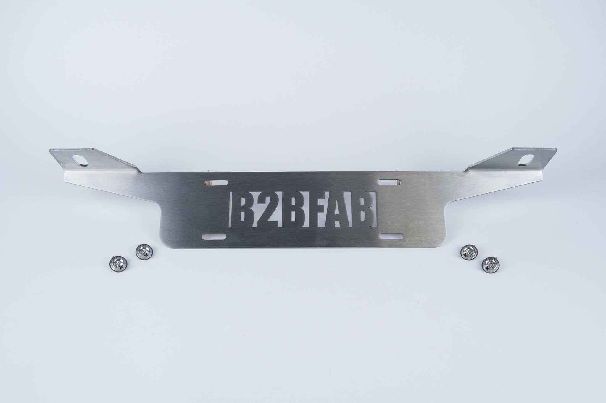 The B2BFAB Auxiliary Two Position U.S. Plate Width Light Bracket is a universal light bracket designed to be affixed to the bumper and allows for two lights to be mounted securely. The Width of the bracket and the hole spacing matches standard U.S. plates so it can be run behind your front license plate. Stainless steel construction provides a durable, long lasting, rust-free part. The ultimate solution to mount lights of your choice. A laser cut B2BFAB Logo is featured in the center and can be shown off or covered with a U.S. plate or even a European plate of your choice since the hole pattern in the bracket and the height matches our European License Plate Frame available here.