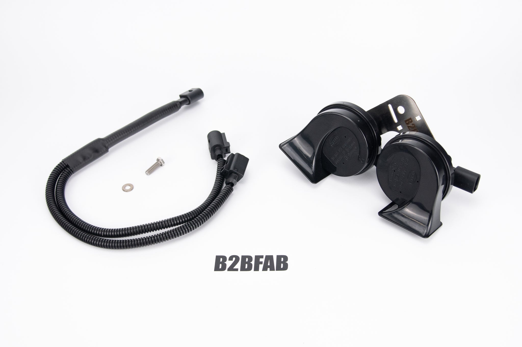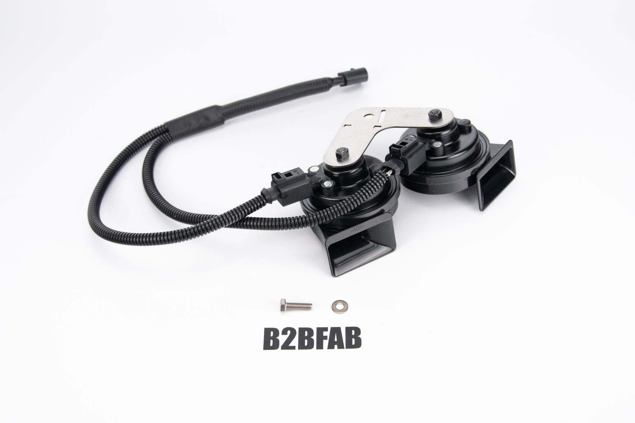 We developed a dual tone horn kit with a plug-and-play wiring harness that mounts via a precision CNC-cut stainless steel bracket for long life and optimal corrosion resistance. The entire assembly slips right into place and installs with just one bolt in the factory location. Install is easy, with only having to remove the screws along the top of the upper grill to gain access. Get your B2BFAB Taos Upgraded Dual Tone Horn Kit and enjoy the power of a horn that alerts pedestrians, follows motorists, and demands respect rather than laughter.